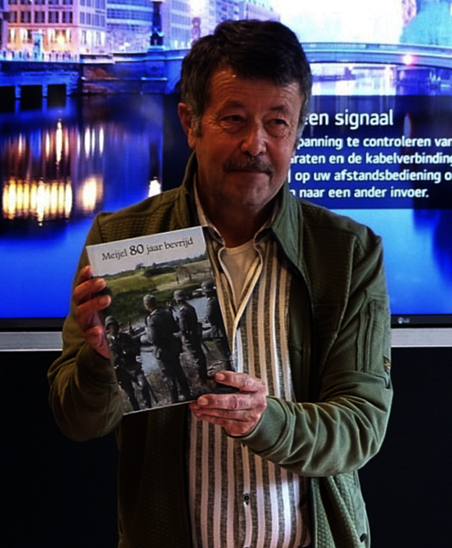 Jos Pouls reikte vervolgens het eerste exemplaar uit aan Bert Verstappen (foto), zoon van de vroegere Meijelse oorlogskenner Harrie Verstappen.