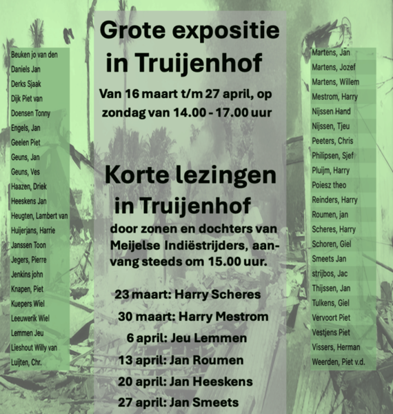 In het kader van de grote Indië-expositie organiseert Medelo vanaf zondag zes weken lang elke zondag een korte lezing door een zoon of dochter van een Meijelse Indie-strijder. Steeds gaat het over de periode Indië van de vader en zijn leven erna.