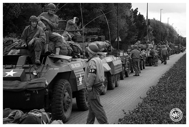 Daarna splitst het konvooi zich op om vanuit verschillende kanten het centrum van Meijel binnen te komen. Rond 3 uur installeren zij zich op het Raadhuisplein waar Duitse officieren de overgave tekenen. Daarna volgen speeches en een kranslegging bij het monument, gevolgd door een ‘static show’. Rond half 7 vertrekken de militairen richting de Vieruitersten, waar ze hun kampement opslaan.
